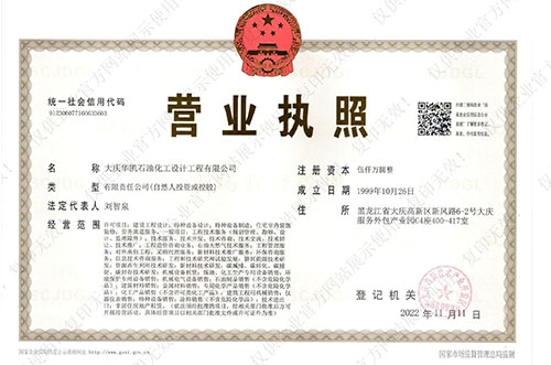 10月26日在大慶開(kāi)發(fā)區注冊大慶華凱石油化工設計工程有限公司;