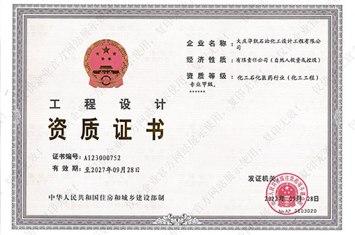 我公司具有化工工程專(zhuān)業(yè)甲級,石油及化工產(chǎn)品儲運、煉油工程、管道輸送、油田地面、制漿造紙工藝、城鎮燃氣工程、建筑工程乙級設計資質(zhì),石化、建筑乙級咨詢(xún)資質(zhì),并通過(guò)了ISO9001質(zhì)量管理體系的認證、環(huán)境管理體系認證和職業(yè)健康安全管理體系認證,具有Ⅰ、Ⅱ、Ⅲ類(lèi)壓力容器設計資格證及壓力管道設計資格證。